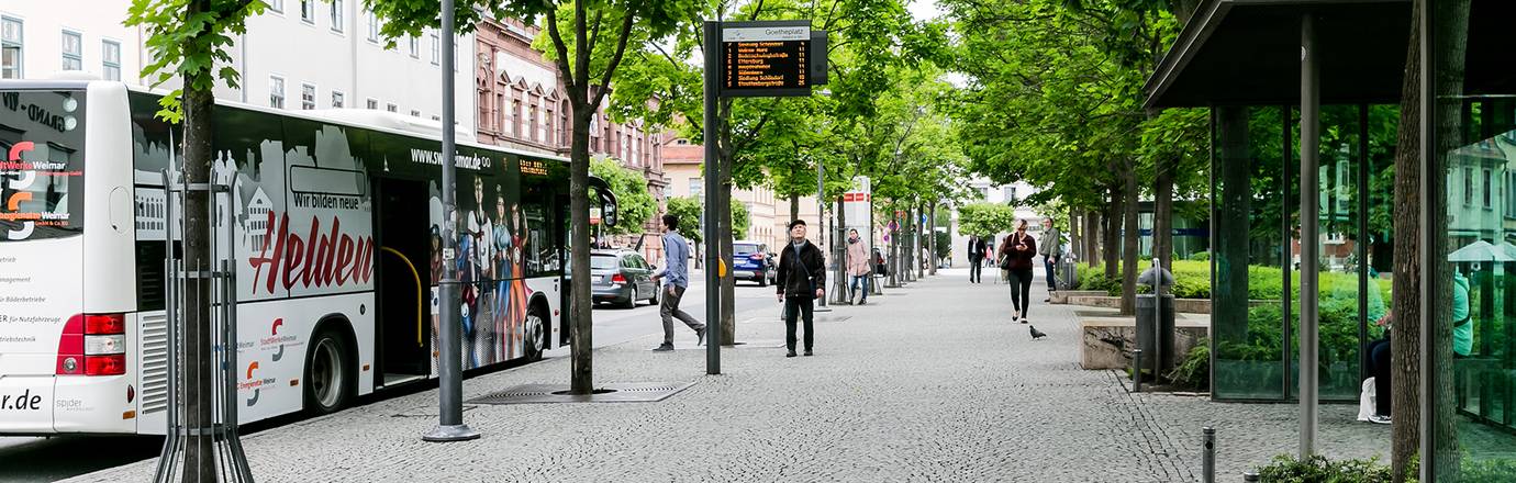 Täglich benutzen viele Fahrgäste die Busse der Stadtwirtschaft Weimar GmbH. Ein dichtes Liniennetz, mit über 300 Haltepunkten und überwiegend attraktiven Taktzeiten, machen es bequem möglich, das Auto stehenzulassen.